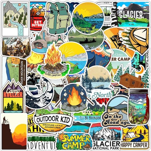 Material: papel e vinil Peso: 30-60 g Tamanho: 3-6 cm Quantidade: 50 unidades Tema de aventura de acampamento 50 peças de adesivos de vinil com fogueiras, tendas, cabines, lagos, montanhas, mochilas e slogans de acampamento, perfeitos para amantes de atividades ao ar livre e entusiastas de viagens. Durável e impermeável Vinil de PVC de alta qualidade com acabamento à prova d'água, à prova de sol e resistente a arranhões, mantendo os adesivos vibrantes e duradouros em garrafas, laptops ou skates. Fácil de aplicar e remover. A forte adesão garante um posicionamento firme em superfícies lisas; o design destacável torna a remoção limpa, sem deixar resíduos pegajosos. Amplo uso na decoração. Ótimo para decorar bagagens, álbuns de recortes, diários, capacetes, guitarras, telefones, bicicletas e equipamentos de viagem, adicionando uma atmosfera única ao ar livre e de acampamento de verão. Criativo para todas as idades. Ideal para adolescentes, adultos, caminhantes e campistas que adoram personalizar seus acessórios com adesivos divertidos para acampar e inspirados na natureza.