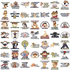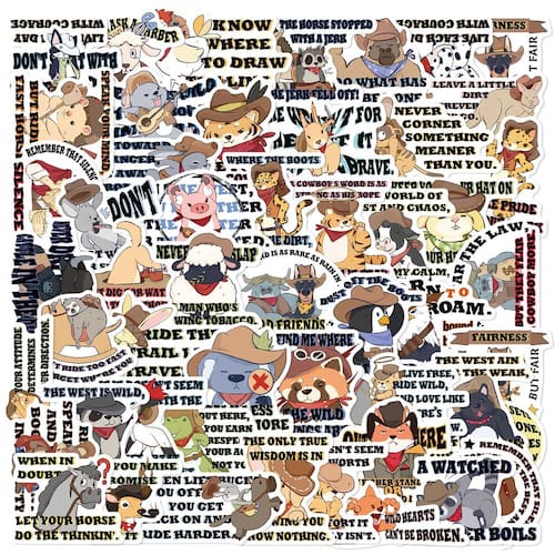 Pacote de adesivos Western Cowboy Animal: inclui 50 adesivos de vinil com divertidos desenhos animados vestidos de cowboys, combinados com citações e ilustrações com temas ocidentais. Duráveis e impermeáveis: feitos de material de vinil de alta qualidade, esses adesivos são à prova d'água, duráveis e ideais para personalizar seu violão, bagagem, notebook, garrafas de água e muito mais. Designs divertidos de faroeste: exibindo animais em chapéus e botas de cowboy, esses adesivos trazem o espírito do Velho Oeste com designs engraçados e aventureiros. Perfeito para várias superfícies: ótimo para adicionar um toque pessoal aos seus itens favoritos, como álbuns de recortes, laptops, garrafas de água e muito mais, com esses divertidos decalques com temas ocidentais. Ótimos para amantes de cowboys e animais: perfeitos para fãs do Velho Oeste e de designs com temas de animais, esses adesivos se destacam com seu estilo divertido e peculiar.
