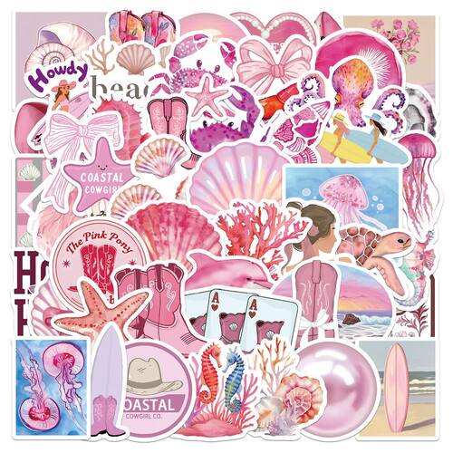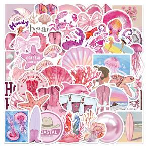 Material: papel e vinil Peso: 30-60 g Tamanho: 3-6 cm Quantidade: 50 peças do tema Ocean Coastal 50 peças de adesivos de vinil com golfinhos, medusas, conchas marinhas, tartarugas marinhas, estrelas do mar, corais, botas de cowboy, pranchas de surfe e designs estéticos costeiros rosa marinho. Duráveis e impermeáveis Feitos de material de PVC de alta qualidade, esses decalques são à prova d'água, resistentes ao desbotamento e de longa duração, ideais para decoração interna e externa. Ampla variedade de usoPerfeito para laptops, garrafas de água, álbuns de recortes, diários, capas de telefone, guitarras, skates e malas, adicionando uma atmosfera costeira de sonho. Os adesivos autoadesivos Easy Peel & Stick descascam suavemente e colam firmemente em superfícies planas e limpas, removíveis sem deixar resíduos e reutilizáveis para aplicações criativas. Estilo Cute Teen Girl Projetado para estudantes, amantes do diário e fãs de bricolage que gostam da estética kawaii, marinha e rosa costeira.