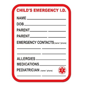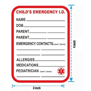 Material: PVC Tamanho: 7,6 x 10 cm Identificação de emergência infantil — Inclui espaço para informações essenciais, como nome da criança, data de nascimento, alergias, medicamentos e contatos de emergência. Decalque de vinil autoadesivo — Fácil de aplicar em carrinhos de bebê, assentos de carro, bolsas ou qualquer superfície lisa, sem deixar resíduos quando removido. Material de PVC durável — impermeável e resistente às intempéries, garantindo que esses decalques permaneçam intactos sob várias condições. Acesso rápido a informações vitais - Ajuda pais e responsáveis a acessar rapidamente detalhes de contato de emergência e informações médicas importantes. Ideal para segurança infantil — Perfeito para creches, escolas ou situações de emergência, proporcionando tranquilidade com informações de contato de emergência claras e visíveis.