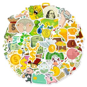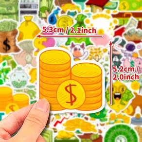 Pacote de adesivos, moedas de ouro, colares, dinheiro para laptop e muito mais