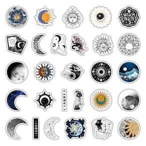Pacote de adesivos celestiais: inclui 60 adesivos de vinil com belos designs de luas, sóis, fases da lua e símbolos místicos da astrologia, perfeitos para entusiastas cósmicos. Duráveis e impermeáveis: feitos de material de vinil premium, esses decalques são à prova d'água, resistentes a arranhões e ideais para decorar seu laptop, garrafas de água, malas, skates e muito mais. Astrologia e desenhos de bruxas: com uma mistura de motivos celestiais, incluindo luas crescentes, sóis, estrelas e símbolos místicos, esses adesivos adicionam um toque de energia cósmica a qualquer superfície. Perfeito para personalização: ideal para decorar álbuns de recortes, diários, cadernos e capas de telefone, adicionando um toque mágico e celestial aos seus pertences pessoais. Ótimos para amantes da astrologia e da lua: indispensáveis para fãs de astrologia, temas celestiais e feitiçaria, esses adesivos são perfeitos para expressar sua conexão com o universo e as energias cósmicas.