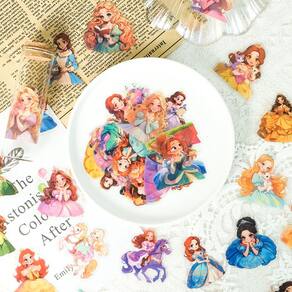 Material: papel e vinil Peso: 30-60 g Tamanho: 3-6 cm Quantidade: 50 peças de desenhos com tema de princesa — Inclui 50 adesivos exclusivos com adoráveis personagens de princesas em vestidos coloridos, perfeitos para adicionar charme fantástico aos seus pertences. Vinil impermeável durável — Feito de material de vinil transparente de alta qualidade, à prova d'água e resistente a arranhões, garantindo cores vibrantes de longa duração e detalhes nítidos. Decoração multiuso — Decalques ideais para laptops, telefones, copos de vidro, álbuns de recortes, cadernos, diários, molduras para fotos, skates, malas e projetos de bricolage. Fácil de aplicar — os adesivos são autoadesivos, removíveis e não deixam resíduos pegajosos, permitindo um reposicionamento limpo para uma decoração criativa. Para todas as idades — Um conjunto de adesivos versátil para crianças, adolescentes e adultos que amam personagens de princesas, adequado para artesanato, diários e coleções pessoais.