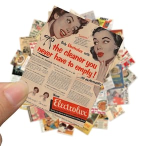 Material: papel e vinil Peso: 30-60 g Tamanho: 3-6 cm Quantidade: 50 unidades Tema de revista vintage — Inclui 50 adesivos exclusivos inspirados em capas de revistas antigas, anúncios e obras de arte nostálgicas, adicionando uma estética retrô aos seus itens. Material de vinil durável — Feito de vinil de alta qualidade que é à prova d'água, resistente ao sol e à prova de desbotamento, garantindo cores e durabilidade duradouras em ambientes internos ou externos. Uso multiuso — Decalques perfeitos para laptops, álbuns de recortes, diários, garrafas de água, capas de telefone, malas, guitarras, carros e skates para decoração criativa. Fácil de aplicar e remover — A forte adesão mantém os adesivos no lugar, enquanto a remoção sem resíduos permite um fácil reposicionamento sem danificar as superfícies. Para adolescentes e adultos — Uma maneira divertida e artística de personalizar pertences com designs retrô nostálgicos, ideais para diários, projetos de bricolage e decoração criativa.