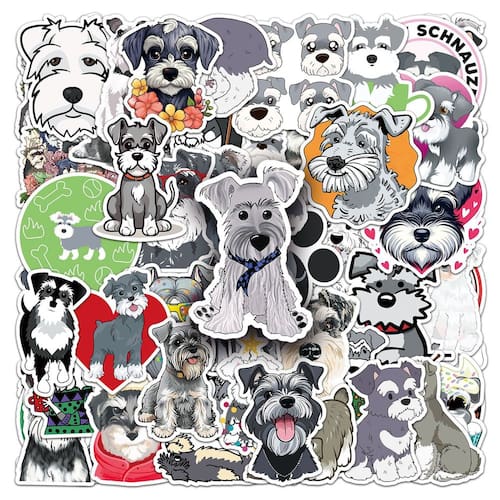 Charming Schnauzer Designs — Apresenta 50 decalques de vinil exclusivos de adoráveis cães Schnauzer em estilos ilustrados e de desenhos animados, perfeitos para amantes de cães, crianças e projetos criativos. Material impermeável de alta qualidade — Feito de vinil durável que é à prova d'água, à prova de sol e resistente ao desbotamento, garantindo uma decoração duradoura em ambientes internos e externos. Fácil de descascar e colar — Os adesivos se aplicam suavemente na maioria das superfícies e são removidos de forma limpa, sem deixar resíduos de adesivo, ideais para personalizar cadernos, laptops e garrafas. Tamanho ideal para itens pessoais — Cada decalque mede entre 5 e 8 cm, o que os torna perfeitos para decoração detalhada em suas garrafas de água, capas de telefone, diários e skates. Diversão para todas as idades — Uma ótima maneira de adicionar personalidade aos itens do dia a dia, adequada para crianças, adolescentes e adultos que adoram Schnauzers e adoram criar ou decorar.
