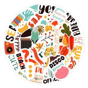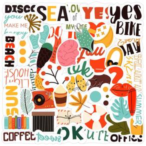Material: papel e vinil Peso: 30-60 g Tamanho: 3-6 cm Quantidade: 50 unidades Conjunto de clima de verão: paleta de laranja/azul/amarelo brilhante com sol, mar, bicicleta, roupa de banho, bóia salva-vidas, xícara de café, caras de gato, plantas e letras divertidas de “SIM/OK”; perfeita para temas retrô de colagem e diário. Vinil de PVC durável com acabamento à prova d'água, resistente a UV e a arranhões; remove de forma limpa de superfícies lisas sem resíduos pegajosos. Fácil de usar — os designs pré-cortados descascam rapidamente e são aplicados sem bolhas; fixam com firmeza e ainda podem ser reposicionados durante a colocação. Funciona em laptops, garrafas de água, capas de telefone, skates, capacetes, cadernos e malas; ótimo para personalização em casa, escola e viagens. Tamanhos mistos de cerca de 1,2 a 3,5 polegadas; diversão para crianças, adolescentes e adultos que gostam da estética do verão, do oceano e do doodle vintage.