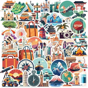Material: papel e vinil Peso: 30-60 g Tamanho: 3-6 cm Quantidade: 65 unidades World Landmarks & Adventure Theme — Apresenta atrações famosas como Big Ben, Torre Eiffel, Torre Inclinada, templos, montanhas e globos, perfeitas para amantes de viagens e exploradores. Vinil impermeável e durável — Feito de adesivos de vinil de alta qualidade, resistentes à água, desbotamento e arranhões, garantindo cores vivas duradouras em qualquer superfície lisa. Decoração multiuso — Ótima para laptops, malas, skates, diários, álbuns de recortes, garrafas de água, bicicletas, carros, telefones e muito mais, adicionando uma estética única aos itens pessoais. Designs vibrantes e estéticos — Inclui ícones de viagem coloridos, como aviões, bússolas, câmeras, mapas e vistas panorâmicas, projetados para inspirar desejo de viajar e criatividade. Para crianças, adolescentes e adultos — Decalques divertidos com temas de viagem adequados para todas as idades, ideais para decorar material escolar, malas, projetos de bricolage e criar coleções personalizadas.
