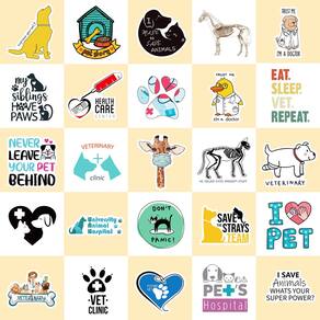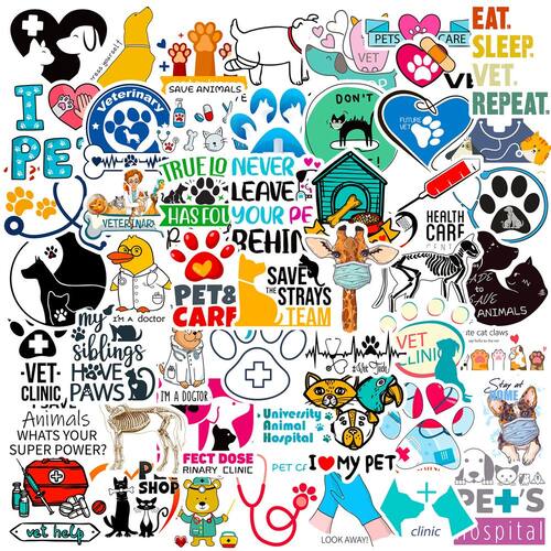 Pacote de adesivos Veterinary English Anime Waterproof Vinyl x50