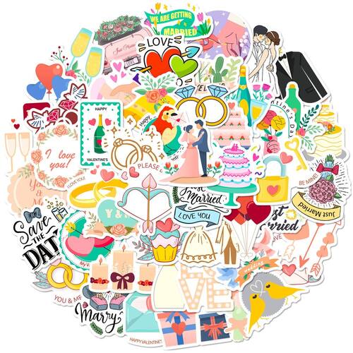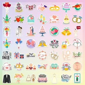 Pacote de adesivos Wedding Love Valentine`s Day Anime Water 50 unidades