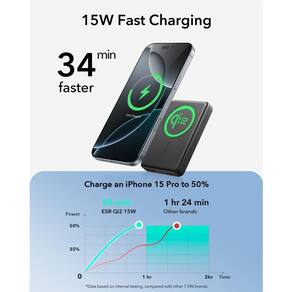 ESR Pacote de bateria com certificação Qi2 MagSafe, carregador portátil de carregamento rápido de 10.000 mAh 15W, carregador portátil ultracompacto, carregador MagSlim MagSafe USB-C de 27 W com cabo para iPhone 16/15/14/13/12, preto - Carregamento rápido certificado Qi2: carregamento MagSafe de 15 W oficialmente certificado Qi2 para iPhone dá a você uma carga mais segura, rápida e confiável, alimentando seu iPhone 15 Pro 2x mais rápido do que um carregador de 7,5 W - Ultracompacto: fino e compacto com apenas 0,2 kg, este carregador portátil de 10.000 mAh é o carregador perfeito em movimento - Dissipação de calor: sensor NTC embutido, algoritmo de IA e dissipação de calor de grafeno monitoram ativamente o carregamento para evitar sobrecarga e superaquecimento, garantindo proteção segura do dispositivo e aprovação de viagens aéreas - Bloqueio magnético forte: 1.200 g de força magnética mantém seu carregador portátil firmemente no lugar durante o carregamento - Carregue 2 ao mesmo tempo: carregue dois dispositivos simultaneamente com o carregamento sem fio Qi2 MagSafe e carregamento com fio USB-C; o carregamento sem fio é compatível apenas com iPhone 16/15/14/13/12; na caixa: carregador portátil Qi2, cabo USB-C para USB-C de 2,0 pés (0,6 m) e manual - Suporte completo ao cliente: vídeos detalhados de configuração e perguntas frequentes, plano de proteção abrangente de 24 meses, suporte vitalício e ajuda personalizada - Observação: Samsung e Android sem carregamento sem fio podem usar apenas carregamento com fio USB-C de 27 W. Não suporta carregamento MagSafe sem fio Samsung e Android com capa não magnética. Não suporta carregamento rápido Qi2 de 15 W para Samsung e Android