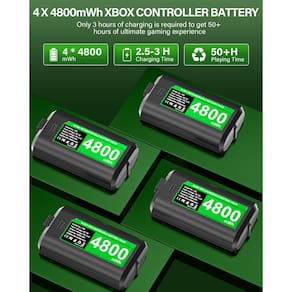 - 4 x 4800mWh PARA XBOX PACOTE DE BATERIA RECARREGÁVEL: essas baterias recarregáveis para controle Xbox são compatíveis com Xbox Series S/Xbox Series X/Xbox One/Xbox One S/Xbox Controladores sem fio One X/Xbox One Elite, equipados com 4 baterias recarregáveis de grande capacidade de 4800 mWh para controladores Xbox e um carregador rápido de bateria para Xbox. A bateria do controlador xbox one tem vários métodos de carregamento, incluindo console, PC, hub USB, etc. (observado: não menos que 5V2A)