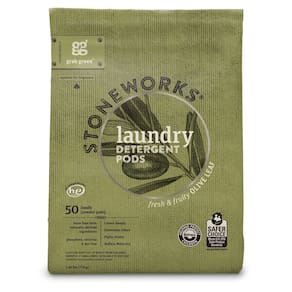 Grab Green Stoneworks Conjunto de cápsulas de detergente e secadora de roupas, 50 cápsulas e 80 folhas de secadora, aroma de folha de oliveira, conjunto de cuidados com a lavanderia à base de plantas