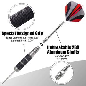 WINSDART ADKX Conjunto de 12 dardos de ponta de aço com barril de ferro antiderrapante, eixos de dardos e voos de alumínio + apontador de dardos + uma caixa de presente (dardos - B) - Inclui 12 dardos de alta qualidade que você tem o suficiente para praticar e o suficiente para organizar sua próxima reunião. Além disso, você receberá 12 eixos de plástico extras para reserva e 4 voos estilo + apontador de dardos - Projetado com barris de ferro antiderrapantes de alta qualidade que proporcionam equilíbrio e estilo excepcionais, cada dardo pesa 22 gramas resistentes - O conjunto de dardos profissional funciona para todos os níveis de habilidade. Quanto mais pesado o dardo, mais estável é o voo, o que deve permitir que você atinja seu alvo com mais frequência - Com uma linda caixa de presente que os torna fáceis de transportar e armazenar, cada dardo tem seu próprio local de armazenamento. Não se esqueça de comprar um conjunto extra para um amigo! Um ótimo presente - Marca confiável e bom atendimento: nosso atendimento ao cliente de classe mundial quer que você fique satisfeito com sua compra, se por algum motivo você não estiver completamente satisfeito com nosso produto, nossa equipe de atendimento ao cliente reembolsará sua compra.