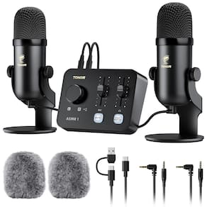 Pacote de equipamento de microfone TONOR ASMR com interface de áudio, áudio estéreo 3D imersivo, microfones de condensador duplo com mixer de áudio, som nítido, controle de volume, com pára-brisas peludos, conjunto para ASMR, preto