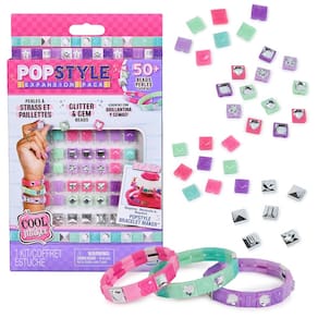 Pacote de expansão Cool Maker PopStyle Bracelet Maker, mais de 50 miçangas, 3 pulseiras Friendship, kit de fabricação de pulseiras, brinquedos infantis DIY Arts & Crafts para meninas - MISTURE E COMBINE mais de 50 miçangas: as meninas podem descobrir 56 novas pulseiras para expandir sua seleção de miçangas no estilo pop com este kit de pulseiras de amizade — 38 gemas brilhantes, 12 miçangas embutidas e 6 miçangas prateadas! - FAZ 3 PULSEIRAS DE AMIZADE: Este kit de fabricação de joias tem tudo o que é necessário para fazer mais 3 pulseiras com o PopStyle Bracelet Maker (vendido separadamente) — a maneira mais fácil de fazer pulseiras! - CRIE E RECRIE PULSEIRAS: as meninas podem expressar sua criatividade ao criar e refazer suas pulseiras exclusivas, trocando miçangas por estilos infinitos para combinar com suas roupas ou melhores amigas! - Use com o fabricante de pulseiras POPSTYLE: o fabricante de pulseiras PopStyle não requer nós, cortes ou fechos — basta colocar e tirar miçangas para se divertir sem complicações! Os kits de artesanato DIY Cool Maker são divertidos presentes de Natal e aniversário para meninas de 7 anos ou mais. - PRESENTES E BRINQUEDOS DE ARTES E ARTESANATO PARA CRIANÇAS: As crianças adoram expressar suas habilidades criativas com o artesanato infantil Cool Maker! Explore uma máquina de costura infantil, kit de unhas, argila seca ao ar livre, materiais de artesanato e mais brinquedos para meninas! - Inclui: 38 gemas brilhantes, 12 gemas embutidas, 6 gemas prateadas, 7 elásticos — cobertos pelo compromisso da Spin Master Care. Veja abaixo os detalhes completos