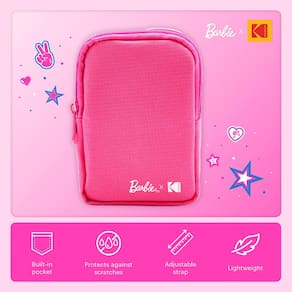 - BARBIE X KODAK COLAB: Esta fabulosa e icônica câmera rosa BARBIE x Kodak é sua melhor companheira para diversão instantânea. Coloque esta joia Barbie de bolso em sua bolsa e tire memórias em movimento.