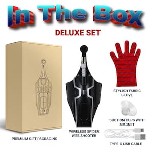 Liberte o herói interior do seu filho com este incrível pacote de tiro de teia! Qual criança, e a criança em muitos de nós, nunca sonhou em entrar em aventuras de heróis de aranha? Quem nunca imaginou a emoção de atirar uma teia do pulso para pegar os bandidos e restaurar a paz? Finalmente, você pode finalmente dar vida a essa fantasia com o único kit de cosplay Joyful Juniors Web Shooter! Projetado para jovens e jovens de coração, este lançador de cordas é onde a emoção encontra a criatividade. Dê uma olhada no que torna nosso atirador de teia um item essencial: Tem aparência e diversão realistas para uma experiência autêntica de herói de ação. Leve com apenas 99 g, com uma pulseira de silicone durável e confortável Tem mais de 2,5 m de alcance com pontas de ímã e ventosa para fixar em diferentes superfícies. Possui um sistema de retração automática de um botão recarregável por USB. Desfrute de um design elegante e totalmente preto anônimo adequado a um herói disfarçado. Inclui ímãs extras, chave de fenda e cabo de carregamento para um kit completo. Além disso, cada pacote de brinquedo atirador de corda de aranha lançador de teia vem com uma luva vermelha combinando para completar o visual de super-herói. Seja para uma aventura no quintal ou uma festa temática, nossos atiradores de teia são perfeitos para fãs de ação de aranha, entusiastas de RPG e qualquer pessoa com mais de 6 anos que ame diversão envolvente e imaginativa. Prepare-se para adicionar aventuras infinitamente emocionantes à hora de brincar do seu filho e obtenha nossa garantia de paz de espírito de 30 dias ao mesmo tempo. Não espere! Entre em ação e pegue seu pacote de dispositivos web agora mesmo! - Diversão sem parar na teia: dê vida à fantasia de super-herói do seu filho com este pacote de brinquedos realista de tiro na teia; oferece um visual autêntico e brincadeira sob medida para aspirantes a lançadores de teia a partir de 6 anos; seja brincadeira de criança ou cosplay, prepare-se para aventuras incríveis com tema de aranha - Ação de arremesso fácil e infinita: com grande potência vem grande capacidade de reprodução, nosso atirador de cordas tem um longo alcance de 2,4 m e retrai automaticamente ao pressionar um botão, sem emaranhamento; as crianças adoram a operação fácil e sem costura, além da recarga rápida através do cabo USB incluído - Qualidade e estilo adequados para um herói: habilmente projetado e trabalhado, começando com a pulseira de silicone flexível para durabilidade e conforto superiores ao náilon típico; o visual elegante e preto anônimo, livre de parafusos expostos, combina estilo com furtividade para a busca heroica definitiva - Desbloqueie o modo multiaranha: mais do que apenas um brinquedo, você recebe um kit completo de gadgets de super-heróis com ímãs intercambiáveis e pontas de ventosa para fixar facilmente a várias superfícies; além disso, inclui uma luva elegante e ímãs extras em embalagens sem frustração para a busca mais imaginativa das aranhas - Presente icônico para jovens heróis: a Joyful Juniors se dedica a criar brinquedos que acendem a alegria e despertam a imaginação; nosso pacote de tiros de teia de luxo é um presente emocionante para brincadeiras imersivas; perfeito para crianças e adultos, é um sucesso infalível para qualquer ocasião