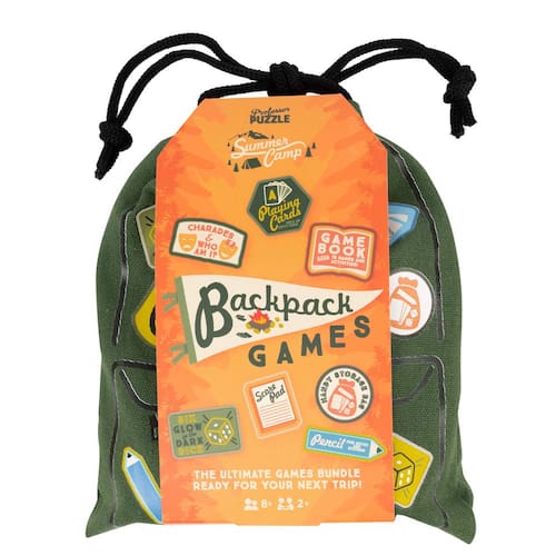 O melhor conjunto de jogos pronto para sua próxima viagem! Completo com uma mistura completa de jogos de cartas, jogos de dados e jogos de festa, há algo para todos. Leve esta bolsa cheia de guloseimas de jogos com você aonde quer que você vá, de férias de acampamento a dias na praia ou estadias!