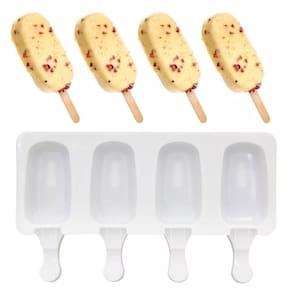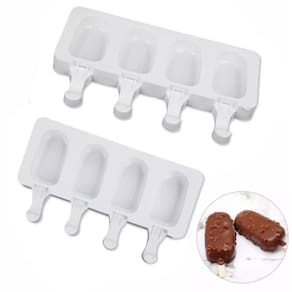 Pacote de 2 moldes e paletas de sorvete de silicone reutilizáveis ** Cor: branco. ** Material: silicone. ** Medidas do molde: 14,6 cm de largura x 25,8 cm de comprimento x 2,6 cm de profundidade. ** Medidas da paleta: 5 cm de largura x 9 cm de comprimento x 2,6 cm de profundidade. ** Inclui 50 palitos para sorvete. ** Use o molde para fazer barras de sorvete. ** É reutilizável, antiaderente, macio e fácil de desenformar e limpo. ** Ótimo para fazer picolés de sorvete para crianças, famílias, festas, feriados, reuniões, aniversários, revelações sexuais. ** Pode ser utilizado com iogurte, suco, chocolate e muito mais.