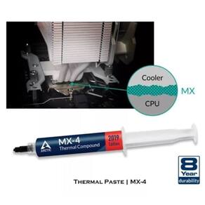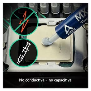 Durabilidade: 8 anos Aplicações: Aproximadamente 15 Dimensões: 4g: 160x110x20 mmCondutividade (W/mK): 8,5 Densidade (g/cm³): 2,5 Peso: 4 Pasta térmica GArctic MX-4: É composta por micropartículas de carbono com condutividade térmica extremamente alta. Garanta que o calor gerado pela CPU ou GPU se dissipe de forma rápida e eficiente com excelente desempenho, a pasta térmica MX-4 é a melhor companheira para overclockers e entusiastas. Aplicação segura: não contém partículas de metal, portanto, a condutividade elétrica não seria um problema. Ao contrário do composto de prata e cobre, ele garante que o contato com qualquer pino elétrico não resulte em danos de qualquer tipo. Tem uma condutividade térmica de 8,5 W/(mK) e uma densidade de 2,50 g/cm. Fácil de aplicar: com consistência ideal, o MX-4 é muito fácil de usar, mesmo para iniciantes. As possibilidades de sua aplicação são diversas, pois ele pode ser utilizado tanto na CPU Intel quanto no AMD Ryzen em PCs ou laptops. O pacote inclui: espátula x3 Termicax3 para espalhar o produto