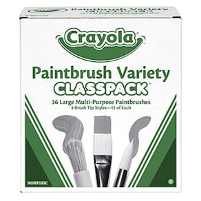 O pacote de variedades de pincel Crayola contém pincéis jumbo, grandes pincéis planos e grandes pincéis redondos. Três tipos diferentes de pincéis para todas as suas necessidades de projeto de pintura! São 12 de cada tipo, 36 no total – o suficiente para toda a classe! Prepare-se para projetos escolares e brincadeiras criativas com pincéis de pintura duráveis e de qualidade da Crayola. Este pacote de pincel de grande variedade é ideal para salas de aula ocupadas e fornece tudo o que as crianças precisam para se divertir com tinta. O pacote inclui pincéis em três estilos diferentes que incentivam as crianças a experimentar com técnica e cor para que possam criar uma espécie de arte.