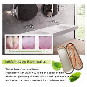 Descrição1. Material: raspador de língua com características de liga de cobre resistente ao calor, é uma ferramenta perfeita para tratar o mau hálito e adequado para adultos e crianças com mais de 8 anos. Inclui 3 formas diferentes de limpadores de língua: raspador em forma de U, raspador de “colher” e raspador “oco”, todos com design ergonômico, alça com recurso antiderrapante para que você possa operá-los facilmente e desfrutar de uma limpeza segura.3. A cabeça de limpeza espessa e resistente remove os detritos da superfície suja sem risco de entalhes, as bordas do raspador de língua são rombas e não prejudiciais, pode manter a saúde bucal e oferecer um sabor melhor e um hálito mais fresco.
