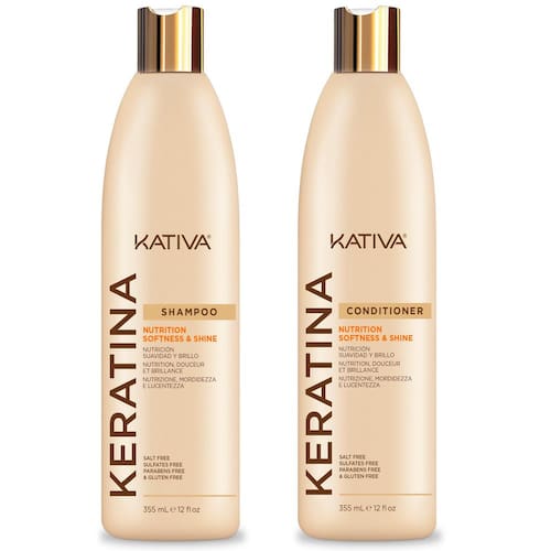 Kativa Conjunto de xampu de queratina (355 ml) e condicionador (355 ml), linha de queratina Kativa, reconstrói e repara cabelos, para cabelos extremamente danificados, sensibilizados, desidratados e opacos, sem sal, sem sulfato, sem glúten, sem parabenos