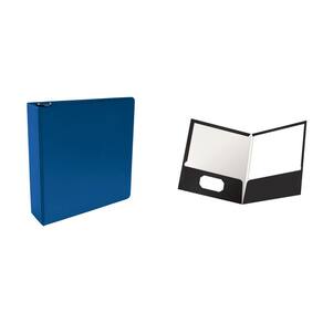 - O kit inclui: fichário azul de 3 polegadas e pacote com 25 pastas de bolso laminadas pretas