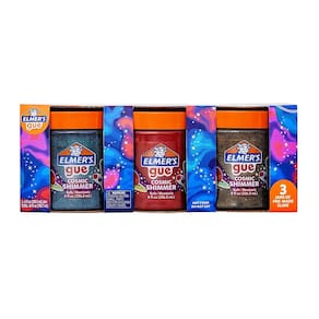 Elmer's Gue Premade Slime, Cosmic Shimmer Glitter Slime, pacote variado, 3 unidades - Geleca pré-fabricada, pronta para brincar direto do recipiente - Para brincar, sem trabalho - A geleca com glitter extra brilhante muda de cor em diferentes luzes à medida que você cutuca, estica e aperta - Seguro, não tóxico - Contém 3 recipientes de Cosmic Shimmer Gue nas seguintes cores: azul-petróleo/roxo, vermelho/laranja, verde/dourado