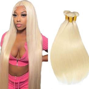 - Cor dos feixes de cabelo trançado: 613 cabelos humanos loiros lisos, podem ser alisados, enrolados, descoloridos tingidos e reestilizados.