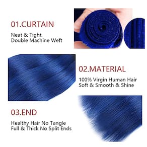 " Introdução do produto de mechas de cabelo humano: 1. Material do cabelo: 100% cabelo humano virgem brasileiro não processado 2. Textura do cabelo: mechas lisas de cabelo humano 3. Peso do cabelo: 100 g/pacote, 300 g no pacote 4. Cor do cabelo: mechas azuis 5. Comprimento do cabelo: Feixes de cabelo de 25 a 81 cm 6. Trama do cabelo: trama dupla à máquina 7. Qualidade do cabelo: sem emaranhados, queda mínima, macio e saudável FQA: P1: Como o cabelo cheira? A1: Livre de produtos químicos nocivos, pode ter um odor de xampu localizado, mas pode ser removido através de xampu e condicionador P2: Quantos mechas uma cabeça de peruca completa precisa? A2: Normalmente, três mechas são suficientes. Mas se você gosta de cabelos grossos, é melhor usar mais um pacote " - ?Material de cabelo azul?: Feixes de cabelo humano Remy virgem brasileiro não processado 8A. Macio, suave e fácil de gerenciar. - Cor do cabelo liso azul?: mechas azuis, o pacote de cabelo humano é azul - ?Qualidade dos feixes de cabelo humano?: os mechas de cabelo são máquina de trama dupla, sem rachaduras, sem odor desagradável, final saudável, macio e brilhante. - Comprimento e peso do cabelo: mechas de cabelo de 30 a 86 cm na embalagem, 95 a 100 g/mechas, 3 a 4 mechas podem dar um penteado completo. - ?Vantagens dos cachos de cabelo?: Combina perfeitamente com a cor do seu cabelo, parece mais realista e natural. Adequado para viagens, casamentos, festas, encontros, trabalho diário e qualquer outra ocasião.