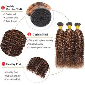 Pacotes ondulados cacheados P4/30: ?Material do cabelo?: Cabelo humano brasileiro de grau 8a. ?Cor do cabelo?: Dois tons, marrom escuro e marrom. ?Tamanho do cabelo?: 20 a 76 cm, 12 tamanhos ?Peso do cabelo?: 95-105 g/pacote, 3 pacotes por pacote/pedido. ?Características do cabelo?: Feixes de cabelo humano ondulado brasileiro ondulado, trama de máquina dupla, bem limpo, sem emaranhados. ?Valor do cabelo?: Cabelo de excelente qualidade faz de você o centro das atenções, mostrando seu charme no dia a dia, feriados e festas. Perguntas frequentes: P1: Por que o cabelo fica emaranhado? R1: Como secura, poeira e caspa corporal podem se acumular no cabelo, é fácil de emaranhar. Portanto, é necessário cuidar e manter seu cabelo regularmente, assim como o seu próprio cabelo, usando xampu e condicionador para ajudar o cabelo a durar mais tempo, e igualmente importante é usar os métodos corretos de cuidado e manutenção. P2: Por que o cabelo cai? R2: A perda de cabelo é muito, muito rara, e também podemos ter uma pequena perda de cabelo ao cuidar do nosso próprio cabelo, pois esse é um fenômeno normal. Não se preocupe. Mais importante, cuide disso com o método correto (pente de dentes largos ou dedos). - Material dos feixes de cabelo: P4/30 mechas de cabelo ondulado cacheado de grau 8A cabelo humano brasileiro, saudável e forte, mechas de cabelo humano macio e sedoso - Cor dos feixes de cabelo: Feixes de cabelo de dois tons, marrom escuro e marrom, mechas de cabelo humano durável e brilhante - Tamanho e peso dos feixes de cabelo: os mechas de cabelo P4/30 são 3 mechas por pacote/pedido, 95-105 g por pacote, vários tamanhos disponíveis de 20 a 76 cm - Características dos feixes de cabelo: mechas de cabelo ondulado brasileiro encaracolado, trama de máquina dupla, bem limpa, não embaraça, fácil de cuidar - Valor dos feixes de cabelo: cabelo de excelente qualidade faz de você o centro das atenções, mostrando seu charme no dia a dia, feriados e festas