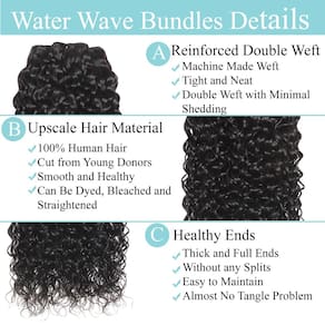 - Vantagem dos feixes de cabelo ondulado de água: 3 mechas de cabelo humano ondulado de água parecem mais naturais e elegantes, dão a você mais chance de fornecer um visual brilhante para a vida diária, adequado para muitas ocasiões, férias, casamento, encontro, formatura, aniversário, férias e presentes para seus amigos e familiares.