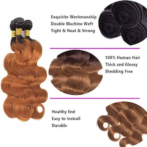 - Ombre mechas de cabelo humano cor: 1B/30 cores de extensões de cabelo preto a castanho claro, feixes de cabelo de trama rápida, feixes de ondas corporais, elegante e cheio, leve e elástico