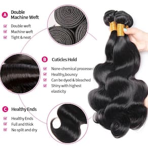 Material dos feixes de cabelo humano: 100% extensões de cabelo humano virgem brasileiro não processado cortadas diretamente de um jovem doador, sedoso, macio e saudável, sem cabelo sintético ou cabelo animal misturado. Sem cheiro, sem processamento químico. Peso e comprimento do cabelo humano: o feixe de ondas corporais tem 80 (+/-5) g cada pacote, geralmente 3 mechas de cabelo humano ondas corporais são suficientes para fazer uma cabeça totalmente bonita. Quando você mede, a maneira correta de medir é alisar e medir o comprimento real. Características do cabelo humano: mechas de cabelo humano de cor natural, trama dupla forte à máquina, trama superior requintada, justa e limpa, cheia e grossa, sem emaranhamento e sem queda. Vantagens dos feixes de cabelo: pode ser branqueado, esticado, confortável de usar, pode ser tingido, com permanente, destacado, enrolado ou estilizado adequado para o dia a dia, estilizado como você gosta, pode durar 1 ano com os devidos cuidados. Serviço de mechas de cabelo brasileiro: ofertas de pacotes de cabelo humano adequadas para festas, aniversário, casamento, férias, viagens, formatura. Uso diário ou como presente. - Material dos feixes de cabelo humano: 100% extensões de cabelo humano virgem brasileiro não processado cortadas diretamente de um jovem doador, sedoso, macio e saudável, sem cabelo sintético ou cabelo animal misturado. Sem cheiro, sem processamento químico. - Peso e comprimento dos feixes de ondas corporais: o feixe de ondas corporais tem 80 (+/-5) g cada pacote, normalmente 3 mechas de cabelo humano ondas corporais são suficientes para fazer uma cabeça totalmente bonita. Quando você mede, a maneira correta de medir é alisar e medir o comprimento real. - Características do cabelo humano: mechas de cabelo humano de cor natural, trama dupla forte à máquina, trama superior requintada, justa e limpa, completa e grossa, livre de emaranhados e sem queda. - Vantagens dos feixes de cabelo: pode ser branqueado, esticado, confortável de usar, pode ser tingido, permanente, destacado, enrolado ou estilizado adequado para o dia a dia, estilizado como você gosta, pode durar 1 ano com os devidos cuidados. - Serviço de mechas de cabelo brasileiro: ofertas de pacotes de cabelo humano adequadas para festas, aniversário, casamento, férias, viagens, formatura. Uso diário ou como presente.