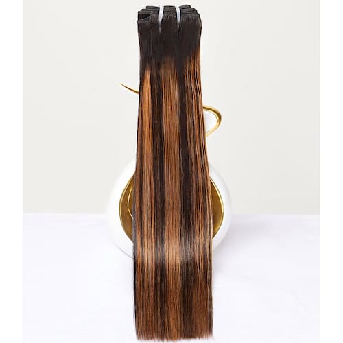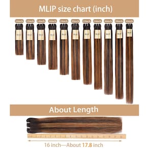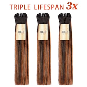 MLIP Feixes de cabelo humano cru liso, sem emaranhamento, mantém a textura sedosa e macia após várias lavagens, 15A mechas de cabelo indiano cru 25 cm, cor marrom com destaque