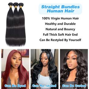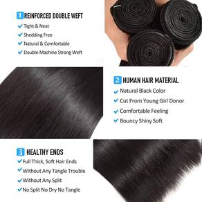 - Material de cabelo humano de mechas lisas: mechas de cabelo humano liso virgem brasileiro, mechas de cabelo humano 100% não processado, cabelo liso brasileiro 3 mechas cortadas de meninas, limpo e saudável.