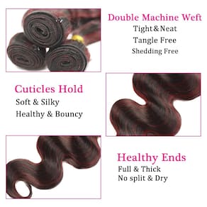 Especificações do cabelo: 1. Material do cabelo: Cabelo humano virgem brasileiro não processado 8A. 2. Qualidade do cabelo: trama dupla à máquina, densa e saudável, sem emaranhados ou quedas. 3. Tipo de cabelo: mechas de cabelo humano ondulado. 4. Cor do cabelo: Cor P1b/99J. Preto natural misturado com cabelo vermelho vinho. 5. Comprimento do cabelo: 20 a 76 cm, com comprimento moderado, tamanhos diferentes podem atender a diferentes necessidades de cabelos curtos ou longos. 6. Peso do cabelo: 95-100 g/pacote, cerca de 3 ~ 4 mechas de cabelo humano podem fazer uma cabeça inteira. 7. Ocasião: Perfeito para uso diário, Halloween, shows, festas temáticas, casamentos, encontros e assim por diante, pode trazer mais beleza e mais charmoso! Perguntas frequentes: P1: Como lavar? Posso molhá-lo? A1: Sim, claro. Adicione um pouco de condicionador à água morna e esfregue o cabelo suavemente enquanto lava, absorva o excesso de água e penteie e deixe secar naturalmente. P2: Como reduzir o emaranhamento ou o desprendimento? A2: cruze os dedos, primeiro desconecte a extremidade e depois desconecte fisicamente a ponta. Não use uma escova ou force para puxar o cabelo. Spray condicionador de cabelo diariamente para torná-lo macio e suave. P3: Como medir o comprimento corretamente? A5: Primeiro, alise o cabelo e meça da cabeça aos pés, em vez de diretamente. - ? {Textura do pacote de destaque} Cabelo humano virgem brasileiro não processado grau 8A. Pacote de trama macia. Aparência natural e confortável de usar. - ? {P1B/99J Pacote de Cabelo Humano Type} Destaque Ondulado Corpo Cabelo Humano. Pacote Ombre de Dois Tons P1B/99J Cor (Mistura Preta Natural Vinho Vermelho) - ? {Vantagem do pacote Ombre} mechas duplas de cabelo humano à máquina. Sem emaranhamento, sem queda, cabelo saudável, muito macio e brilhante. - ? {Peso e comprimento do cabelo} 95-100 g/pacote, escolha de 20 a 76 cm. Cerca de 3 a 4 mechas de cabelo humano podem fazer uma cabeça inteira. - ? {Presente brilhante para você} Perfeito para uso diário e seleção de presentes, trabalho, encontros, Natal. Se você tiver alguma dúvida, sinta-se à vontade para entrar em contato conosco a qualquer momento.
