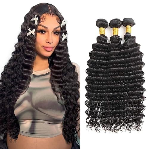 WuvuSnm Feixes de cabelo humano ~ proporcionam uma melhor experiência! 1. Material: Cabelo humano virgem brasileiro não processado. 2. Tipo de extensão de cabelo: Extensões de cabelo humano ondulado profundo. 3. Textura: Pacotes de ondas profundas. 4. Tipo de cabelo humano: Cabelo humano Remy brasileiro. 5. Trama do cabelo: Trama usinada dupla, sem emaranhamento, sem queda. 6. Cor do cabelo: os feixes são de cor preta natural 7. Comprimento do cabelo: Feixes de cabelo de 20 a 86 cm, mechas de cabelo humano ondulado profundo fiel ao comprimento. 8. Peso do cabelo: 3 mechas de cabelo profundo, 100 g/pacote, 300 g no total. FQA: P1: Como evitar emaranhamento ou queda de cabelo? A1: suas extensões de cabelo podem ficar emaranhadas devido à secura, acúmulo de gordura e sujeira. Lave o cabelo com um bom xampu e condicionador e penteie suavemente o cabelo com os dedos. Certifique-se de limpar e aparar pelo menos uma vez por semana. P2: Quantos mechas eu preciso para uma cabeça inteira? R2: Normalmente 3 mechas são suficientes para uma cabeça inteira. - ?Material dos feixes de cabelo humano?: Feixes de cabelo humano virgem brasileiro ondulado profundo não processado. Macio e elástico. - ?Vantagem dos pacotes?: Trama de máquina dupla, firme e limpa, sem queda, sem emaranhados, sem cheiros, fácil de pentear e modelar. - ?Detalhes dos pacotes de ondas profundas?: Preto natural #1B, 95-105 g/feixes, 20,3 cm-86,4 cm, peso total e fiel ao comprimento. - ?Escolha perfeita?: Bonito e moderno, conforto e durabilidade de longa duração, adequado para qualquer ocasião, perfeito para sua coleção de itens essenciais do dia a dia. - ?Nosso serviço?: A Amazon Logistics oferece a você um melhor prazer. Se você tiver alguma dúvida, estaremos à sua disposição a qualquer momento