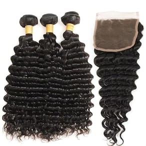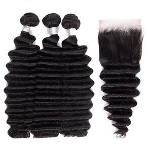 Feixes de cabelo humano ondulado profundo com fecho 14 16 18+12 fechamento