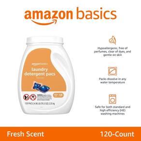 Amazon Basics Recipientes de detergente para a roupa, aroma fresco, 120 unidades (anteriormente Solimo)