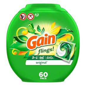 Gain Flings! Sabonete detergente para roupas compatível com HE 60 ct perfume autêntico de longa duração