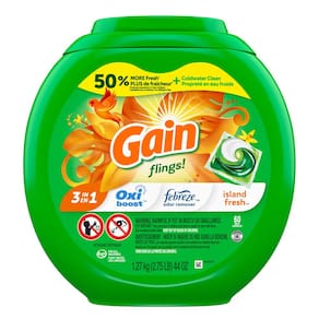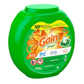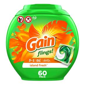 Gain Flings! Sabonete detergente para roupas compatível com HE 60 ct perfume de longa duração Island Fresh