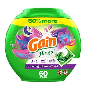 Gain Flings! Sabonete detergente para roupas compatível com HE 60 ct perfume de longa duração brisa luar