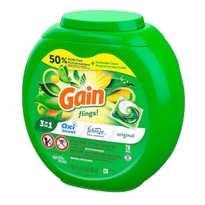 Gain Flings Sabonete detergente para roupas HE compatível com perfume de longa duração, perfume autêntico, 76 unidades
