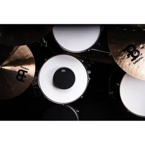 Pad de estudo com dupla face meinl 6 Pad de estudo com dois lados, feito com silicone padrão e espuma marshmallow quase silenciosa que ajuda a desenvolver musculatura. Lado de silicone: o silicone médio-macio oferece um rebote semelhante ao de uma pele de tambor com tensão média, além de reduzir o som para praticar com discrição. O retorno realista simula bem a sensação de tocar numa bateria verdadeira, facilitando a transferência da memória muscular para o kit. Lado marshmallow: é o material mais silencioso da meinl cymbals. A espuma especial marshmallow absorve quase todo o som das baquetas e reduz o rebote, acelerando o fortalecimento dos músculos.