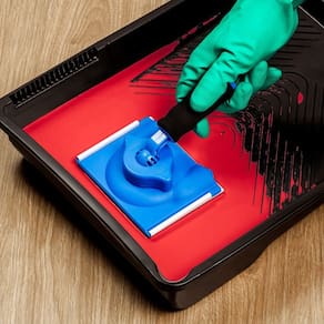 PAD flocado com cabo ajustável em 360° com rosca. Indicado para pintura de recortes e cantos de paredes e aberturas em geral. Ideal para aplicação com tinta acrílica, esmalte e pva em superfície lisa.
