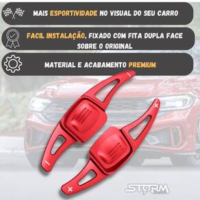 Paddle Shift Volante Vermelho Vw Golf Jetta Polo Virtus Par Cor: Vermelho Esse Produto é compatível com os veículos abaixo: - Jetta TSI 2015 em diante - Jetta GLI 2022 em diante Não serve no GLI 2019 a 2021 - Golf TSI MK7 2014 em diante - não é compatível com o GTI - Novo Polo 2017 em diante - Virtus todos os anos - Nivus todos os anos - Passat TSI 2015 em diante - Amarock 2017 em diante - T-Cross todos os anos - Nova Tiguan 1.4 TSI 2018 em diante - não compatível com a versão R-line - Taos todos os anos OBS: Para outros modelos com volante aos das fotos do anuncio favor nos consultar para verificar compatibilidade. Mais detalhes do Produto: Produto totalmente plug and play, instalação sem necessidade de adaptação e de fácil instalação. Valor do anuncio é referente ao PAR Lado Esquerdo botão - e Lado Direito botão + - Material: Liga de alumínio leve e resistente - Instalação: Fixado com fita dupla face de alta resistência acompanha o produto . - Cor: Vermelho - Pintura especial de alta resistência, não desbota com o tempo. - de 6 meses. Ainda está com alguma dúvida Aqui são algumas das principais perguntas: P. Necessita adaptação para instalar P. Acusa algum erro no painel do carro R. Não, produto totalmente compatível com os modelos listados na lista de compatibilidade. P. Tem R. Sim, produto com de 6 Meses. P. Anuncio é referente a uma unidade o par R. Anuncio referente ao par Lado direito + Lado esquerdo P. Qual a condição do produto R. Vendemos somente produtos novos e lacrados Ainda com alguma duvida que não foi respondida acima Fique a vontade para entrar em contato conosco, nossa equipe técnica está de prontidão para lhe ajudar. Quem Somos: Somos a Storm Parts, trabalhamos com peças automotivas com de alta qualidade, queremos que você e seu carro tenham a melhor experiência, por isso selecionamos cuidadosamente todos nossos produtos, aqui você encontra as melhores opções com qualidade, confiança a um preço justo. Tenha tranquilidade de comprar com quem está disposto a oferecer o melhor atendimento, caso precise de ajuda antes ou após a compra, conte com a nossa equipe de atendimento para lhe ajudar. Marca: Não Informado