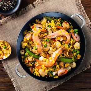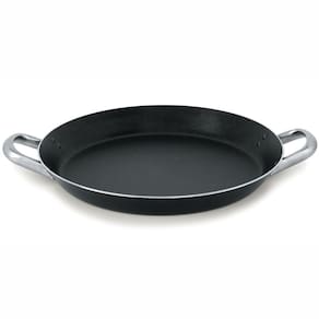 A legítima Paella espanhola deve ser cozida de forma lenta e uniforme. Para obter um resultado perfeito, é indispensável prepará-la em uma “paellera”, ou seja, uma frigideira especialmente desenhada para esse prato. Seus cabos em aço inox permitem o uso da peça também no forno. A linha profissional foi criada para os verdadeiros amantes da cozinha. Todos os produtos são revestido com antiaderente Quartzo, desenvolvido para uso exclusivo nos produtos Multiflon, esse revestimento antiaderente traz como diferencial a sua extrema resistência e durabilidade. O acabamento clássico é destinado para um público mais exigente, sendo próprio para o uso doméstico ou profissinal. O revestimento quartzo é altamente antiaderente e livre de PFOA, que garante a ausência de elementos nocivos à saúde em sua composição.