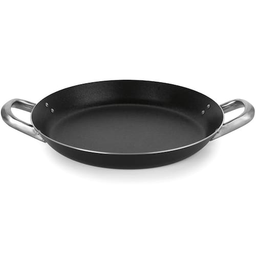 Paellera Profissional Multiflon com revestimento antiaderente Quartzo. Fabricada em alumínio 2,5 mm com cabo de aço inoxidável tubular.